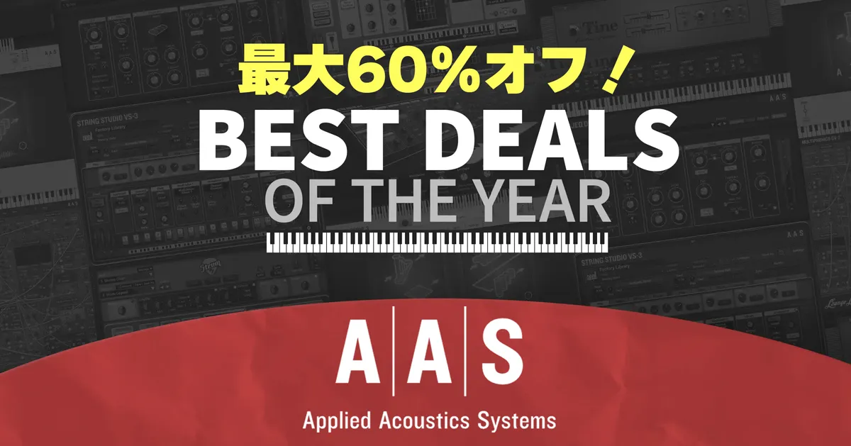 物理モデリング音源で人気のA|A|Sが今年最大級の値引き! バンドル60%オフ!単品55%オフ+拡張1つ無料!アップグレード55%オフ!拡張音源50%オフ