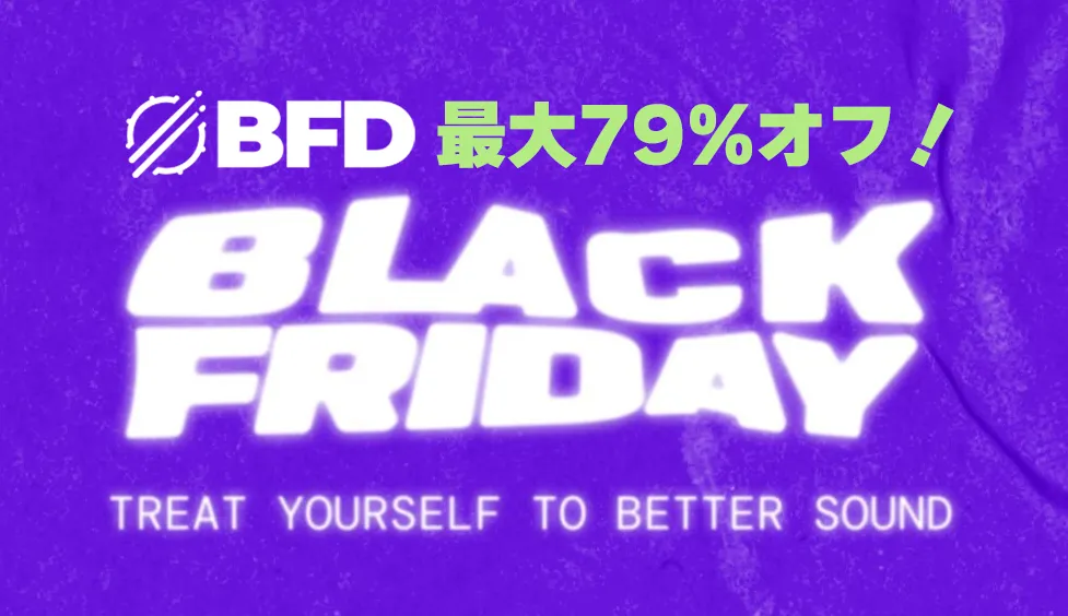 極上のアコースティックドラム音源を、今年最大級のプライスダウンで手に入れるチャンスが到来しました。BFDシリーズの凄みである“生々しいアタック”“空気感まで収めた深いダイナミクス”“プロの現場で即使えるミックス済みサウンド”が、このブラックフライデー期間だけ特別価格に。