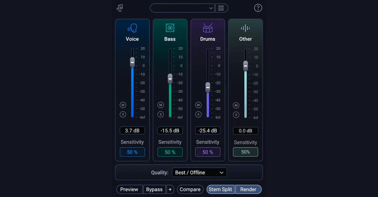 [Improved]オフラインのニューラルネットワークがアップグレードされ精度が向上。よりピンポイントなステム分離が可能になりました。