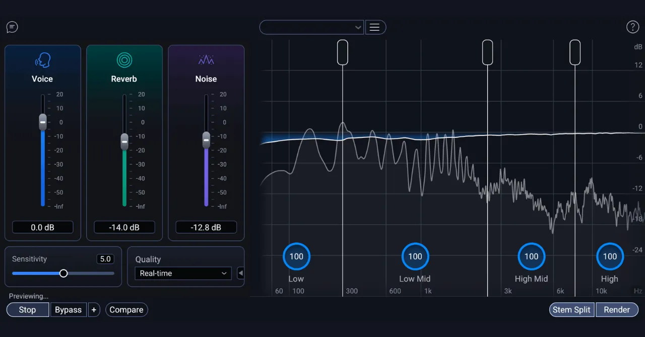 [Improved]セリフやボーカルのノイズ除去およびリバーブ除去を行います。最先端のニューラルネットワークを搭載し、リアルタイムモードとオフラインモードの両方で精度が向上しました。