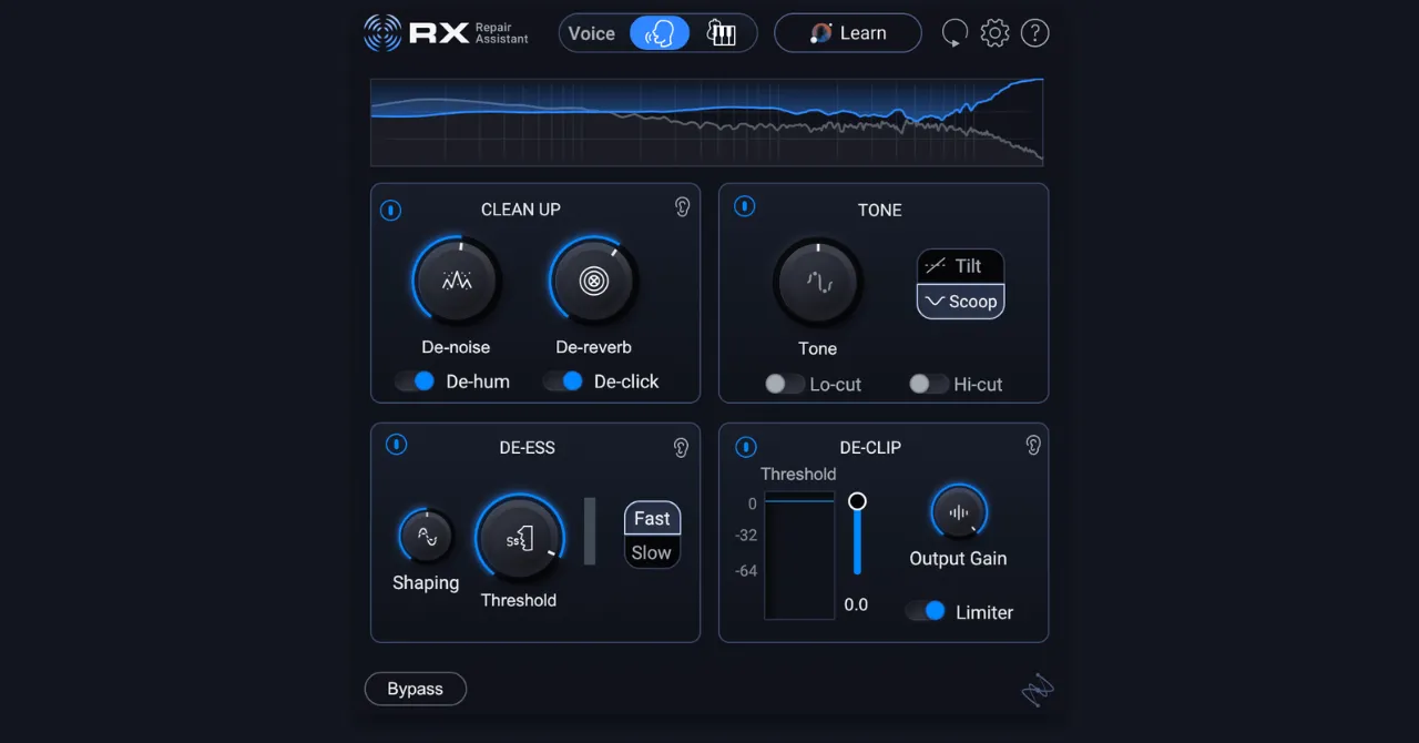 [Rebuilt]セリフやボーカル録音に含まれる息音を低減・除去します。最先端の機械学習を用いて再構築、精度が向上しました。ボーカルや台詞のゲイン調整に費やす時間を削減し、パフォーマンスを守る時間を増やしましょう。