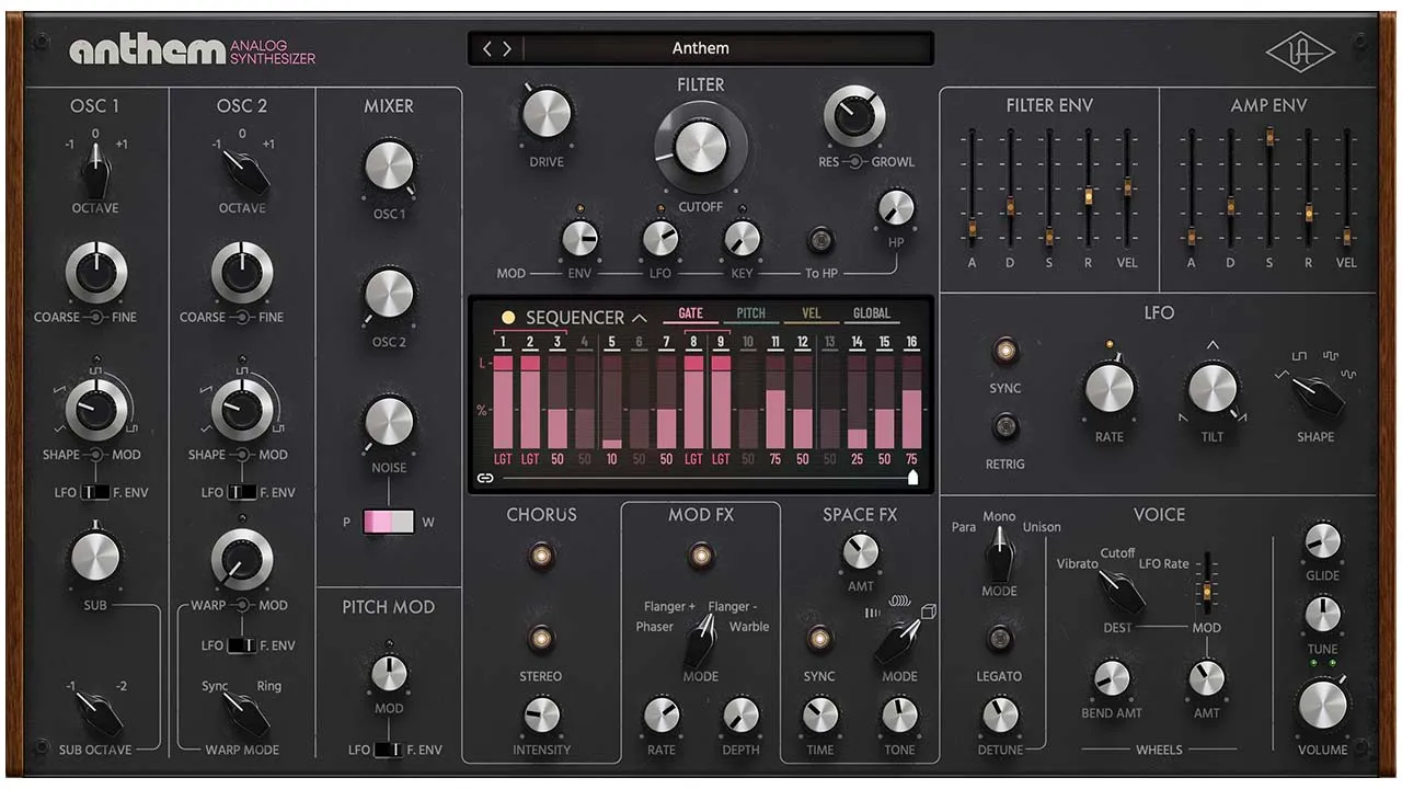 アナログ・モデリングされたオシレーターとフィルター、ステップシーケンサー、UAエフェクト、そして数百種類のプリセットを搭載したシンセサイザープラグイン。