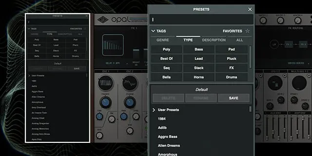UAの元に集結したシンセ信奉者達が愛情込めて作成したOpalの豪華なプリセットを呼び出し、まさに正統なサウンドを手に入れましょう。Opalのプリセットはジャンルを問わず素早く使えるように監修されており、インスピレーションが湧いた瞬間に確実に生