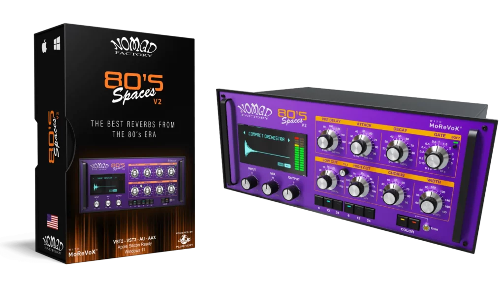 80s Spacesは、1980年代のクラシックなスタジオ制作で聴かれた独特のアンビエンスを再現するために設計されたリバーブ・プラグインです。MoReVoXとのコラボレーションにより開発され、その時代のポップス、ロック、エレクトロニック・ミュージックのサウンドを形作った伝説的なデジタル・リバーブのキャラクター、深み、空間的なシグネチャーを捉えています。高品質なコンボリューション技術と厳選されたインパルス・レスポンス(IR)ライブラリを使用し、象徴的なハードウェア・ユニットの音響挙動を忠実に再現します。