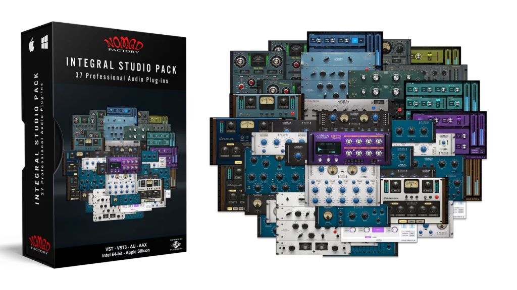 Integral Studio Pack 4は、Nomad Factoryの主要9バンドルを統合し、合計37種類のビンテージスタイル・プラグインを収録した総合制作ツールキットです。レコーディング、ミキシング、マスタリングに必要なプロセッサーを網羅し、EQ、コンプレッサー、サチュレーション、モジュレーション、ディレイ、イメージング、チャンネル処理など、制作に不可欠なツールを一括で導入できます。本バージョンでは、Nomad Factoryの最新DSPフレームワークに基づき、macOS・Windowsの最新環境に完全対応(2026準拠)。Apple Siliconネイティブ対応や、リサイズ可能な高解像度GUIなど、現代の制作環境に最適化された最新仕様へと全面刷新されています。