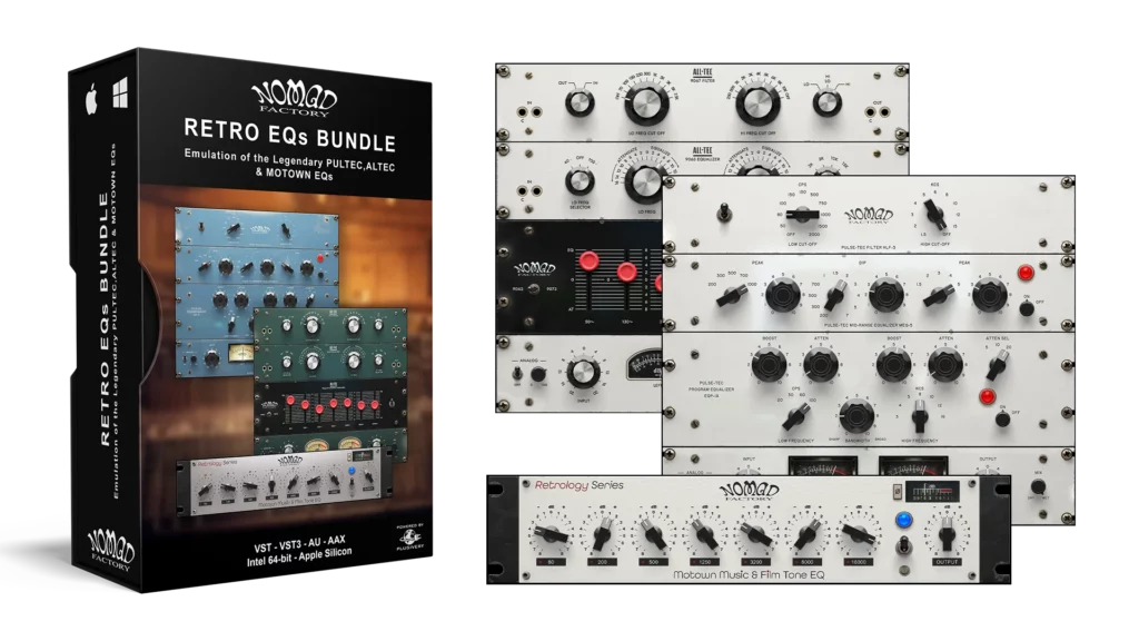 Retro EQs Bundleは、伝説的なパッシブ・アナログ・トーンを現代のワークフローにもたらすヴィンテージEQエミュレーションのプレミアム・コレクションです。スタジオの歴史における異なる時代の3つのクラシックなEQデザインを統合しており、Pultec、Altec、Motown Studiosのアイコン的なハードウェアに触発された、豊かで音楽的なキャラクターを提供します。