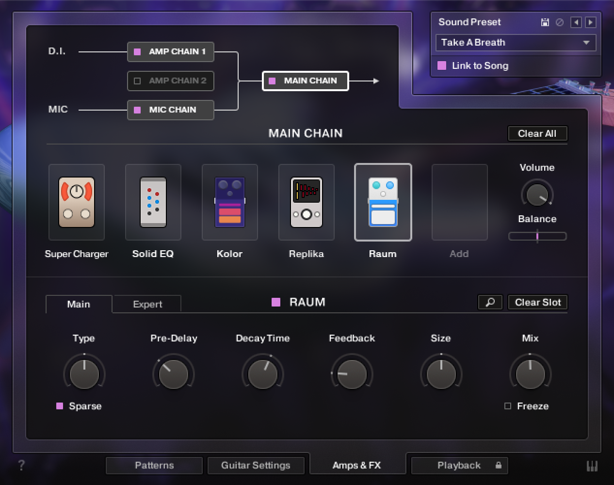 リズムやバッキングに最適化されたパターンベースの演奏エンジンを搭載。キーを押すだけで、グルーブ感のあるギターフレーズを即座に再生できます。