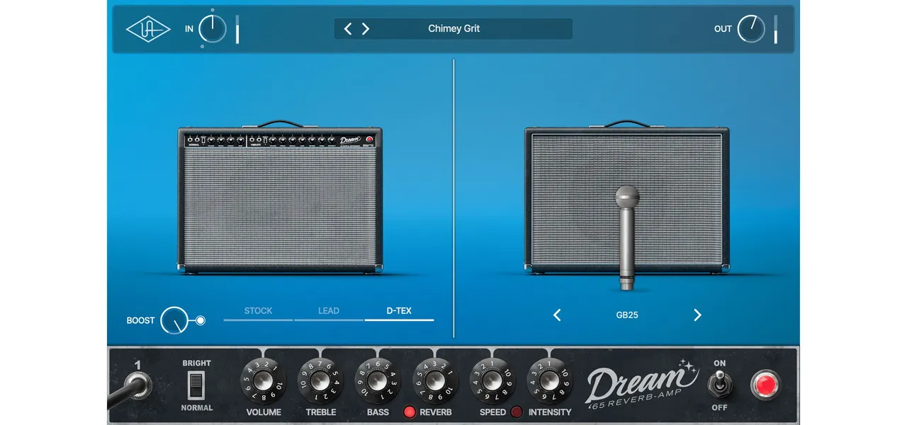 受賞歴に輝くUAFXペダルをベースにしたDream '65プラグインは、大胆なクリーン、甘いチューブブレイクアップ、神々しいスプリングリバーブとビブラートなど、「ゴールデンユニット」として名高い1965年製リバーブアンプの時代を超えたサウンドとフィールをパーフェクトにキャプチャー。