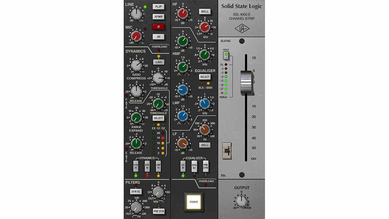 新しいSSL 4000 E Channel Strip Collectionの開発を進めるにあたり、UAのエンジニアチームはSSL 4000 Eのハードウェアを深く掘り下げ、オリジナルプリアンプのJensen入力トランスとdbxの「ゴールドカン」VCA出力セクションを忠実にモデリングしました。プリアンプの特徴的なノンリニアアンプの動作をキャプチャーすることで、SSLの特徴である、拡張性、パンチの効いた、深みのある、主張の強い特性が全て再現されます。