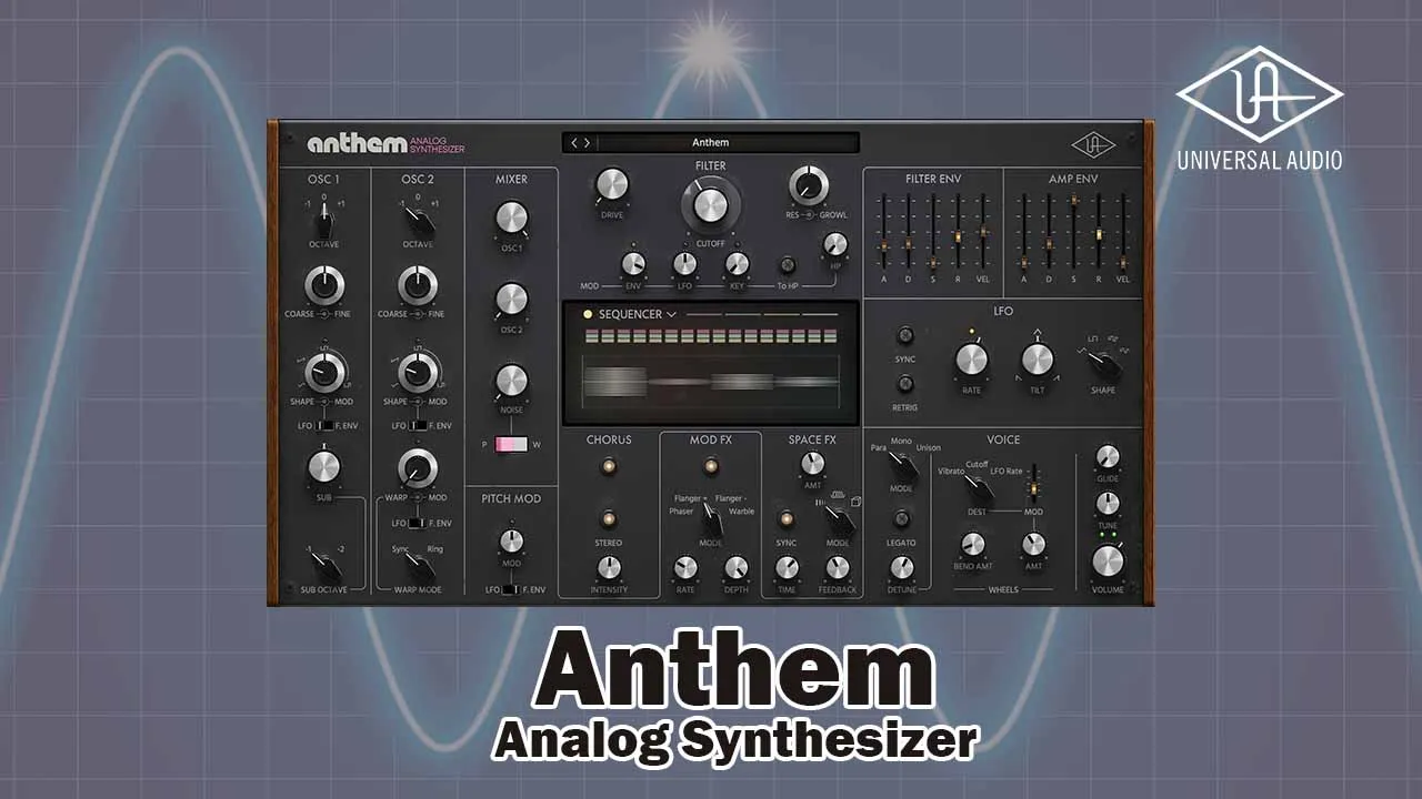 Anthem は、ヴィンテージの個性とモダンなコントロールを融合させた多用途シンセサイザーで、豊かなアナログトーンを自在に操ります。パワフルなオシレーター、豊かなフィルター、そして表現力豊かなモジュレーションを備えたAnthemは、レトロなフックから未来的なサウンドデザインまで、幅広いサウンドに対応します。
